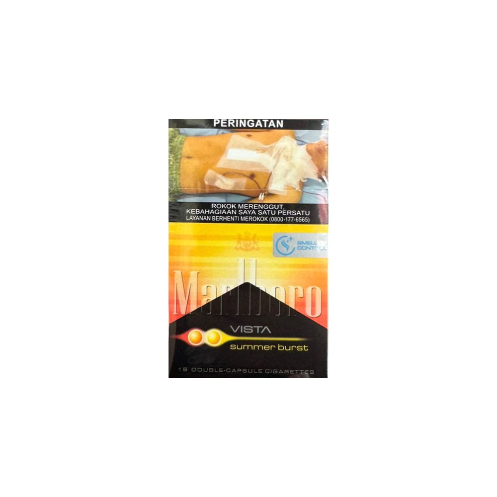 Embrace the sunny season with Marlboro Vista Summer Burst, a refreshing take on the classic Marlboro experience. Featuring a double-capsule filter, this cigarette allows you to choose between two tropical flavors—think juicy strawberry-mango or citrus-menthol—over a light, crisp tobacco base. Designed for warm-weather enjoyment, it delivers a balanced, easy-to-enjoy flavor perfect for laid-back moments.